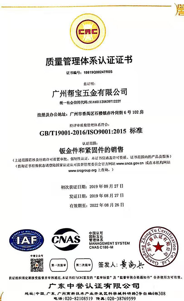 质量管理体系认证证书